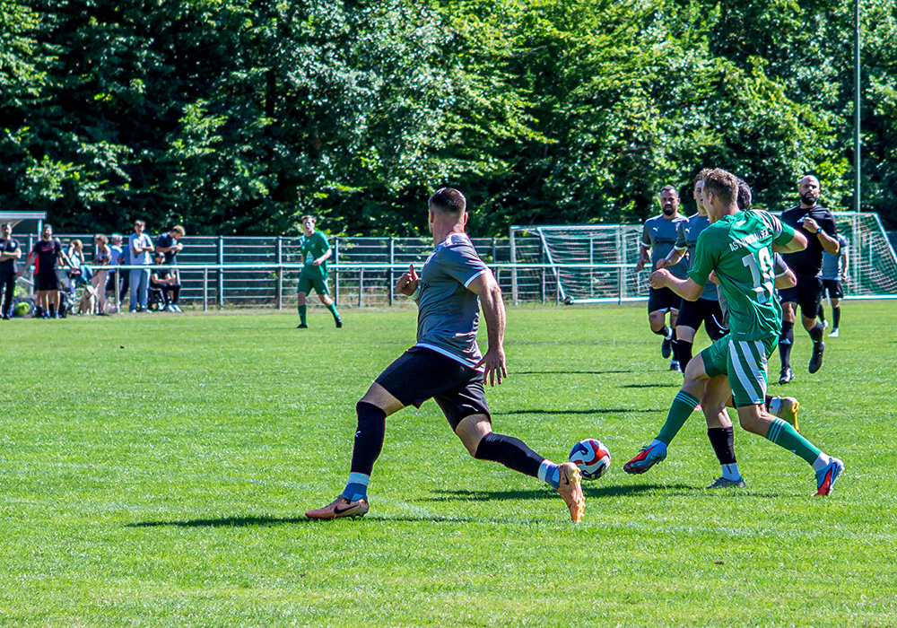 Unsere Jungs begannen aggressiv, liefen den Gegner früh an und das führte zu einigen Fehlern im Aufbau bei Berghausen. Doch Berghausen, das sehr tief stand, konnte das immer wieder bereinigen. Auch weil der ASV im Angriff oft die falsche Entscheidung traf oder zu behäbig und unkonzentriert vor dem Tor agierte.