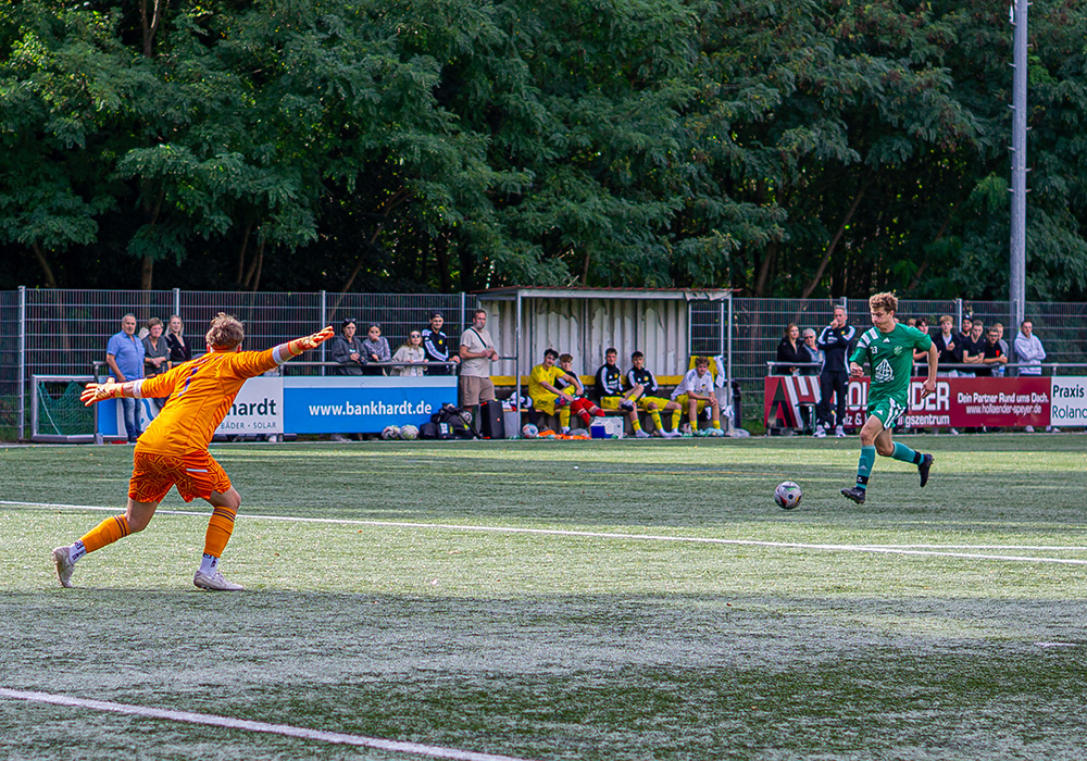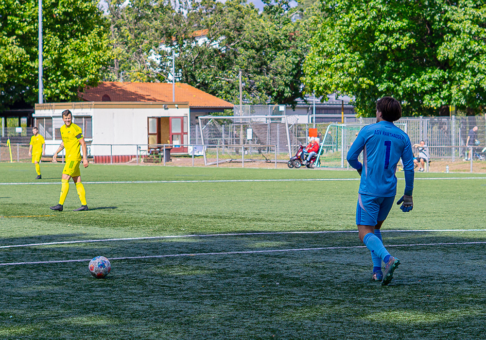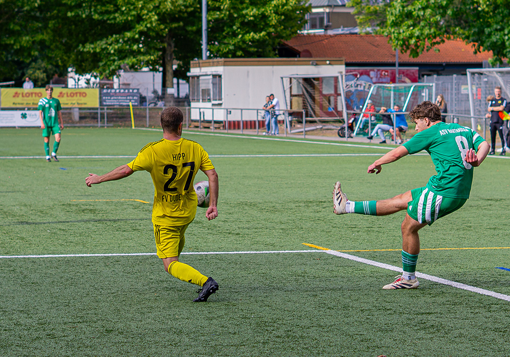 Hinten stand der ASV recht sicher, wie schon in den letzten Wochen, und ließ kaum was zu. Noch in der ersten Hälfte erhöhte der ASV sogar auf 0:3. Wieder war Yannick Hoffmann der Abwehr des FVD enteilt und hämmerte den Ball unter die Latte. Das war schon eine kleine Vorentscheidung in diesem Spiel.