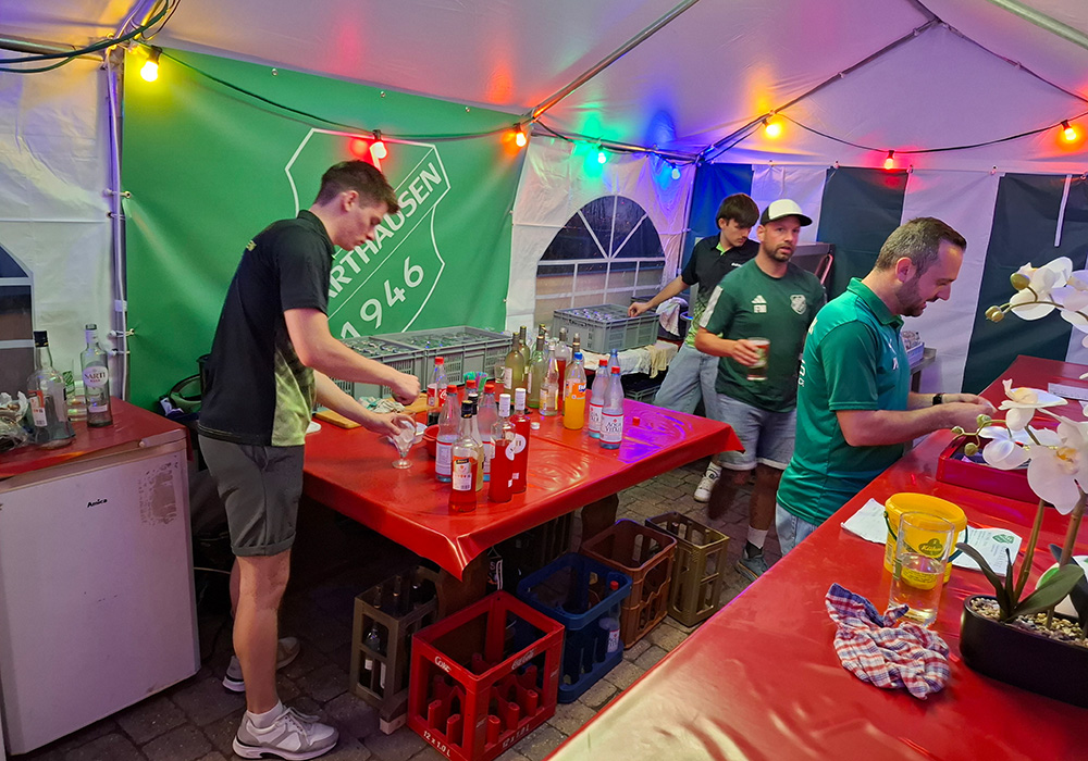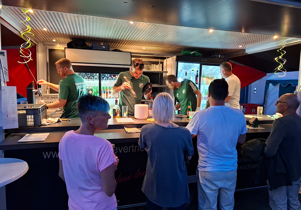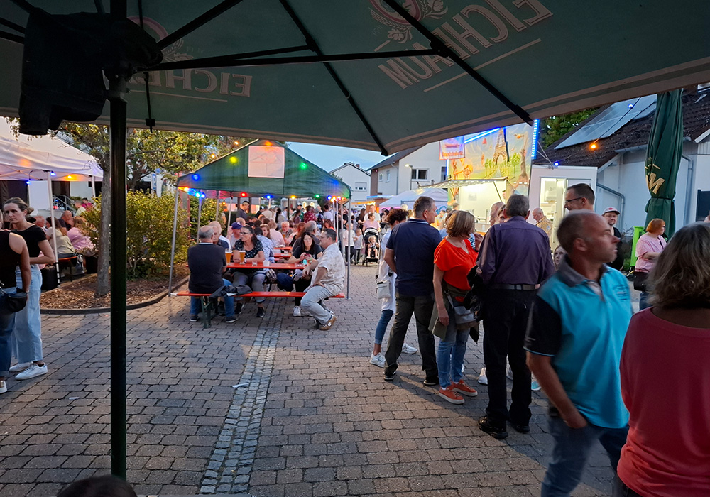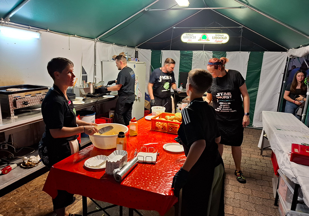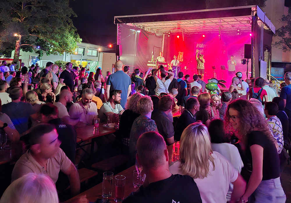 Neben unserem Schorle- und Essensstand, an dem es leckere Spezialitäten wie Gyros mit Tzatziki, Bratwurst, Steak im Brötchen und Pommes gab, sorgten auch die Bands für richtig gute Stimmung. Am Freitag heizte Crush mit guter Musik zum Auftakt ein. Samstags begeisterten die Pfälzer Frühgrumbeere bei perfektem Wetter Jung und Alt vor der Bühne und rissen das Publikum mit. Am Sonntag sorgte Grenzenlos für gute Live-Musik, auch wenn der Dauerregen das Zuhören erschwerte.