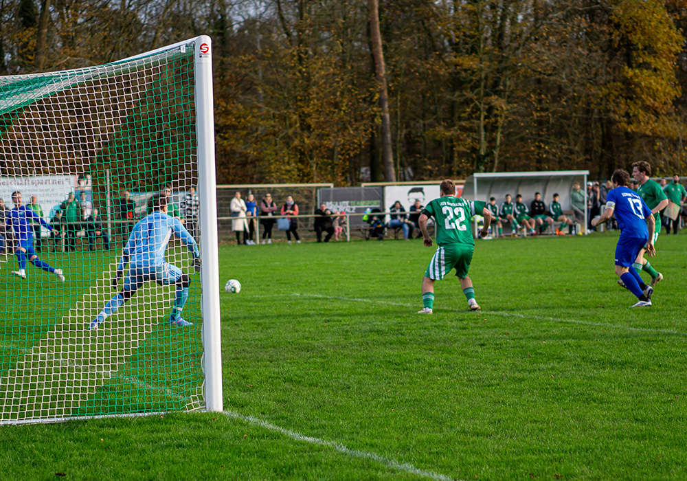 Mit dem Pausenpfiff ging man dann doch noch in Führung. Nach einem gut herausgespielten Konter war Yannick Hoffman nur durch ein Foul zu bremsen. Den fälligen Elfmeter verwandelte Tim König zum 1:0.