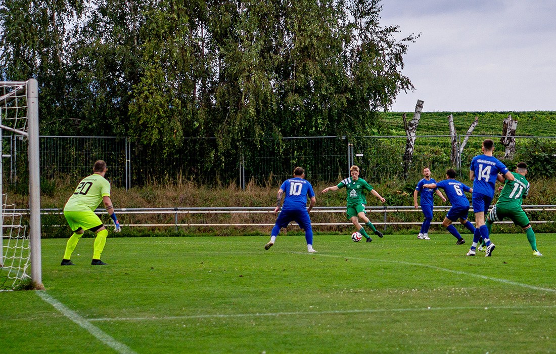 Schon nach wenigen Minuten ging unsere junge Mannschaft mit 0:1 in Führung. Nach einem Freistoß von Jan Heger war Tim Tremmel zur Stelle und drückte den Ball über die Linie.