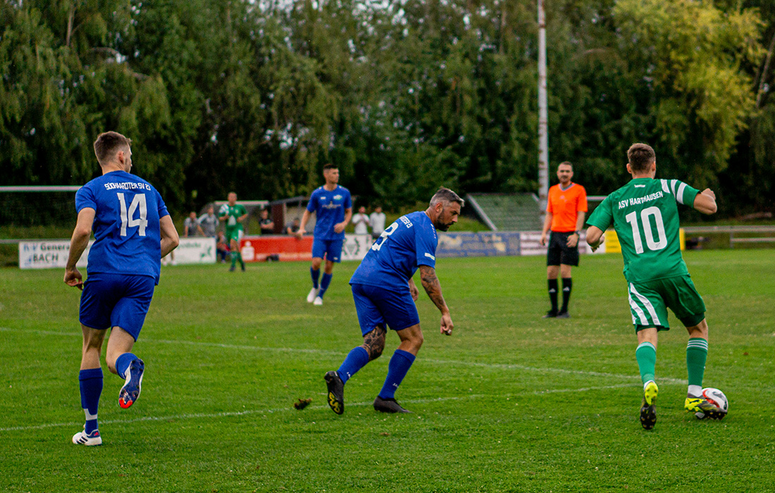 Leider hielt diese Führung nicht lange, denn früh im Spiel gab es auf einmal Elfmeter für die Heimmannschaft. Diesen nutze Südhaardt zum Ausgleich. Danach spielte eigentlich nur noch der ASV, doch bis zur Pause änderte sich am Ergebnis nichts mehr.