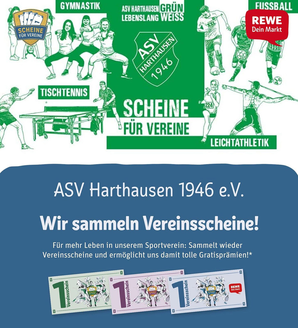 Hallo liebe Freunde des Sports! Auch dieses Jahr nimmt der ASV an der Aktion Teil. Aufsteller von uns befinden sich im Zeitraum vom 27.05. bis 30.06.2024 in Dudenhofen und Schwegenheim. Wenn wir genügend Scheine zusammen bekommen, können wir unsere Sportgruppen mit tollen Trainingsmaterialien ausstatten. Daher freuen wir uns über jeden REWE- Vereinsschein!