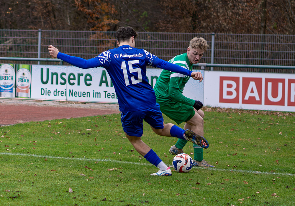 In der 12. Minute fast die gleiche Szene, doch dieses mal war Yannick Hoffman nicht mehr zu stoppen und traf zum 1:0. Auch nach der Führung blieb der ASV bissig und setzte den Gast aus Heiligenstein weiter unter Druck.