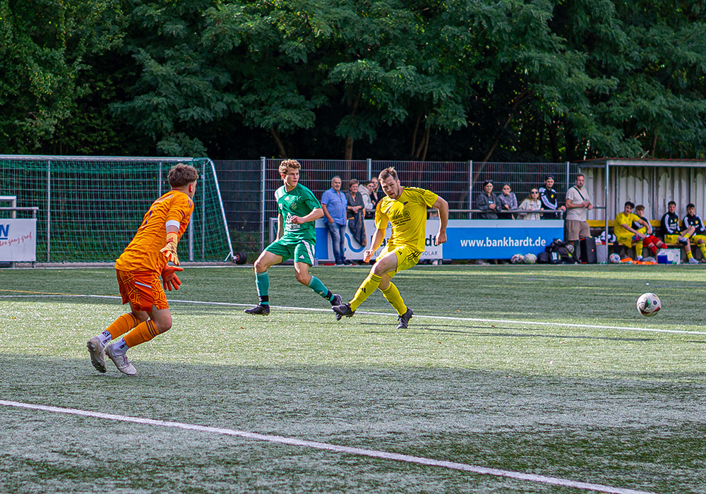 Nach tollem Pass aus der Abwehr war es Yannick Hoffmann der enteilt war und mit einem platzierten Flachschuss das 0:1 erzielte. Das Spiel lief fast nur in eine Richtung, der FVD hatte Mühe sich zu befreien und zeigte einige große Lücken im Abwehrverbund.